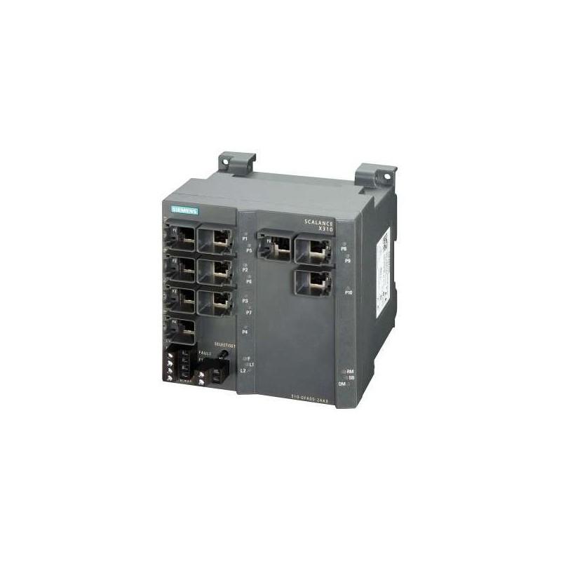 Scalance X310, Managed PLUS IE Switch, 3 X 10/100/1000MBIT/S and 7 X 10/100MBIT/S RJ45 PORTS, LED-DIAGNOSTICS, FAULT SIGNAL CONTACT with SELECT/SET-BUTTON, PROFINET-IO DEVICE, NETZWORK- MANAGEMENT, Integrated REDUNDANCY MANAGER, OFFICE FEATURES (RSTP, VLAN, IGMP,..) C-PLUG IN SCOPE OF SUPPLY
