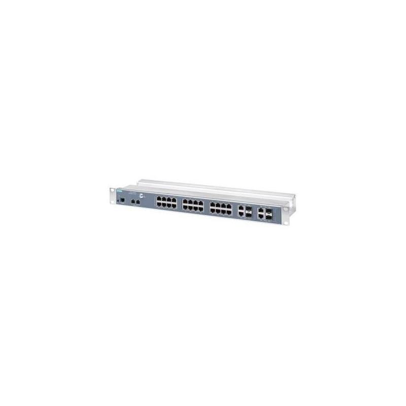 SCALANCE XR328-4C WG managed IE switch 19" rack 24 x 10/100 Mbit/s electrical ports 4 x 1000 Mbit/s combo ports electrical or optical LED diagnostics Reset button console port PROFINET device network management function redundancy manager Power supply 24 V DC