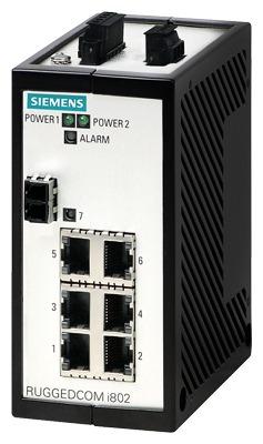 The RUGGEDCOM i802NC is a compact, fully managed Ethernet switches designed to operate reliably in harsh industrial environments. managed or unmanaged; regular or extended temperature; fiber optical or copper interfaces; Fast or Gigabit Ethernet; 56-bit Encryption; Ethernet Ports: 6x 10/100Tx + 1x 100FX or 2x 100FX or 2x 1000LX or 2x 10/100/1000Tx