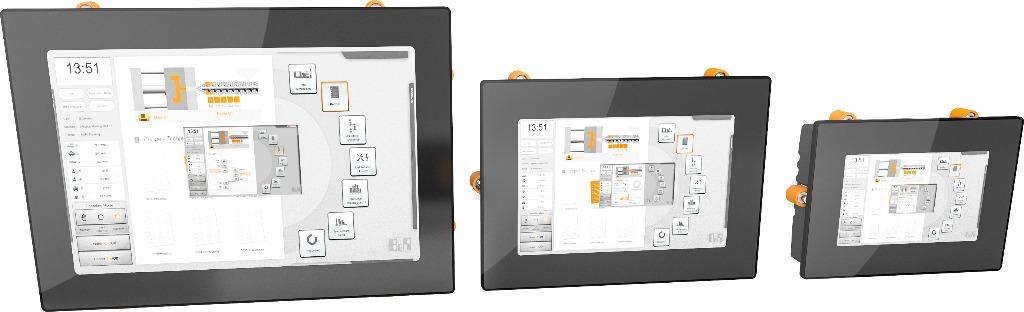 Power Panel T50, 7.0", glass front, 1x Gigabit Ethernet. CPU and memory: 800 MHz dual core (ARM Cortex-A9), 1 GB RAM, 512 MB onboard flash drive. Display and touch screen: 7.0", 800 x 480 (WVGA) resolution, projected capacitive touch screen, multi-touch support, glass front with black frame, landscape and portrait format configurable with software. Interfaces: 1x Ethernet 10/100/1000 Mbit/s, 2x USB 2.0. Client software: Integrated service page, VNC client, embedded web browser.