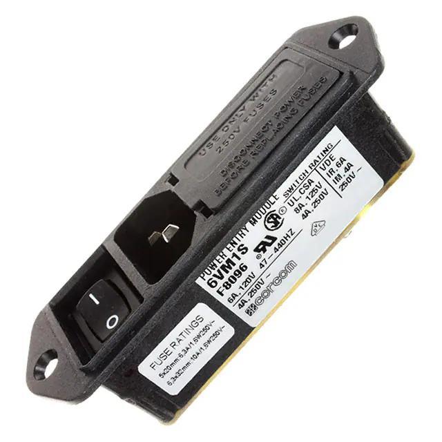 Multi-Function Inlet Filters, Power Entry Module, Single AC Input, DPST, None, Vertical, 6 A, Snap-In, IEC Input, .110" FASTON Output, Corcom M Alias: 6VM1SC=F8097