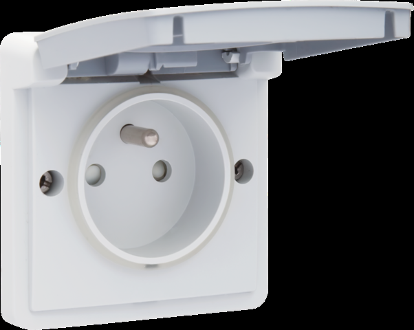 Splashproof socket outlet 16 A/250 VAC with pin earthing, shutters and with screw terminals - White