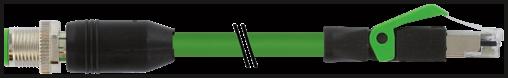 M12 St. 0 D-cod. / RJ45 St. 0 shielded PUR 1x4xAWG22 shielded gn UL/CSA+tow. 1m