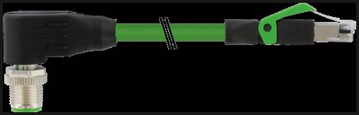 M12 St. 90 D-cod. / RJ45 0 shielded PUR 1x4xAWG22 shielded gn UL/CSA+tow 10m
