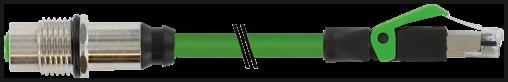 M12 Bu. Flange D-cod. HWM / RJ45 St. 0 shielded PUR 1x4xAWG22 shielded gn UL/CSA 0.5m