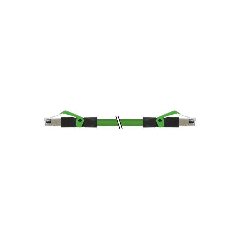 RJ45 macho 0º / RJ45 macho 0º Ethernet PUR 2x2xAWG22 blindado verde UL/CSA+cadeia porta-cabos 15m