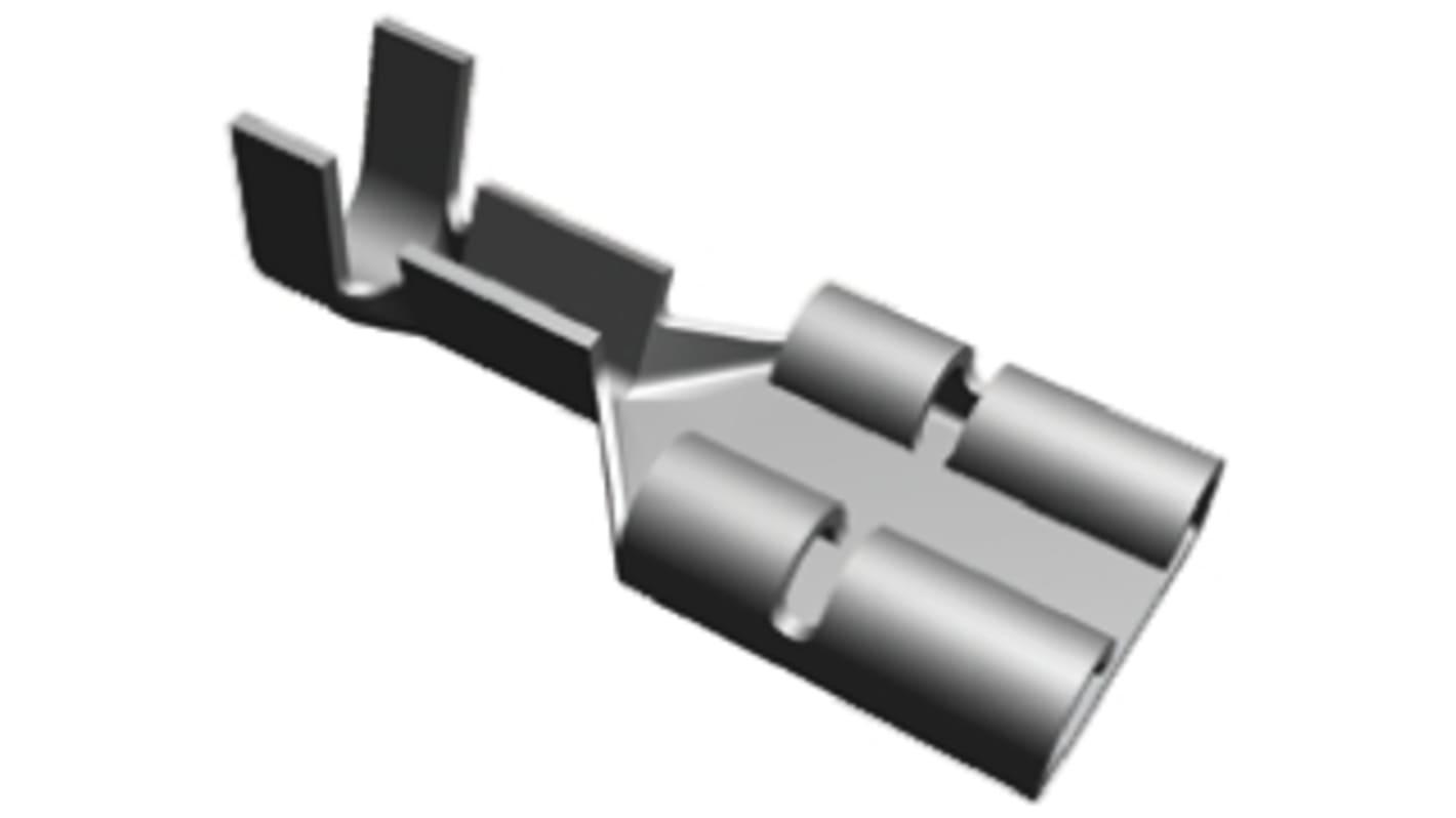 Quick Disconnects, Receptacle, 22 – 18 AWG Wire Size, .32 – .82 mm² Wire Size, Mating Tab Width 6.35 mm [.25 in], Straight, Brass, FASTON 250 Alias: 250 FASTON REC 22-18 AWG TPBR