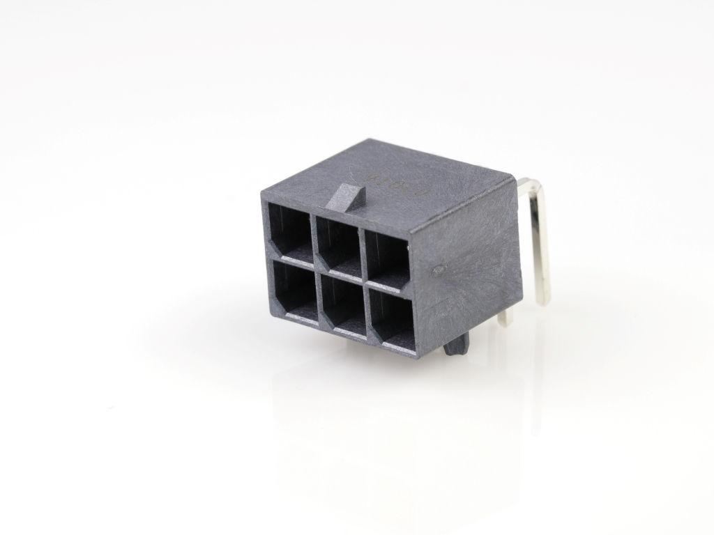 Mega-Fit Right-Angle Header, 6 Circuits, Tin (Sn) Plating, UL 94 V-0, Glow-Wire Capable, Tray