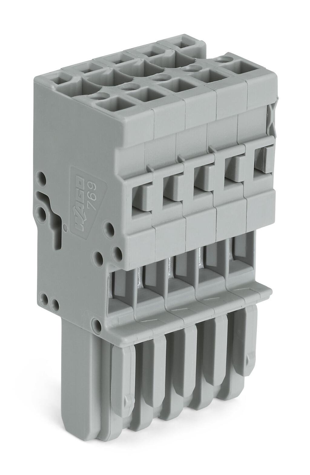Female plug for 1 conductor; CAGE CLAMP; 4mm²; Pin pitch 5mm; 5-pole; coding pin; 4.00mm²; grey