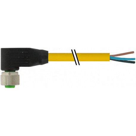 M12 fêmea 90° com cabo V4A TPE 4xAWG18 amarelo UL/CSA + cadeia porta-cabos 10m