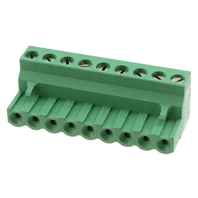 PCB Terminal Blocks, Plug, Wire-to-Board, 9 Position, .197 in [5 mm] Centerline, 1 Row, 180° Wire Entry Angle, 30 – 12 AWG Wire Size Alias: 9 POS 5.0 MM R/A PLUG,TRM BLK