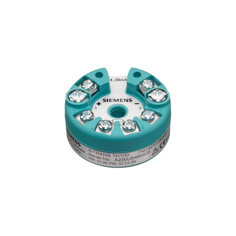 Temperature transmitter SITRANS TH100 for PT100 for installation in connection head Type B (DIN 43729), two-wire system, 4...20 mA, programmable, without electrical isolation Without explosion protection . .