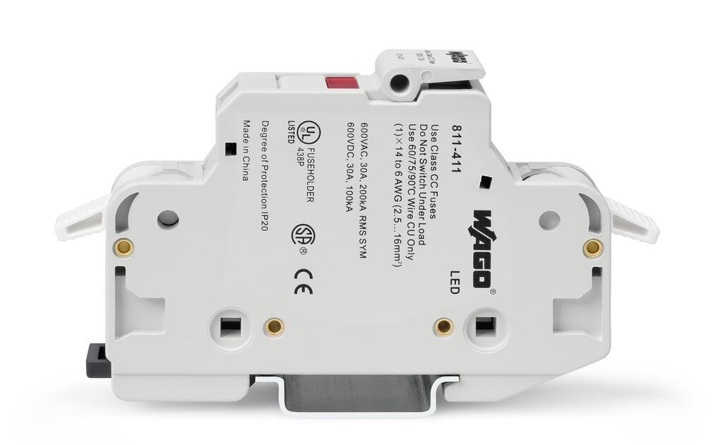 Fuse holder 2 conductors for class CC cylindrical fuses 1 pole with fuse failure indication 600 V ACV DC for DIN rail 35 x 15 and 35 x 75 16 mm² CAGE CLAMP 1600 mm² light gray