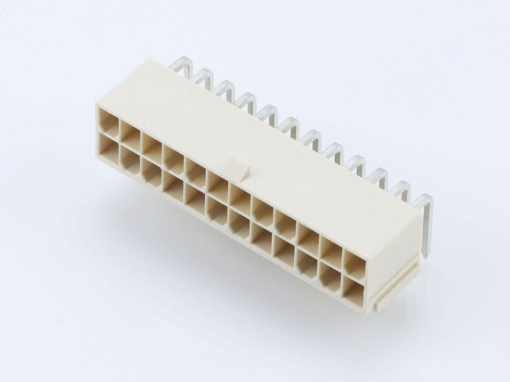 Mini-Fit Jr. Header, 4.20mm Pitch, Right-Angle, Nylon, without Flange,24 Circuits, Tin (Sn) over Nickel (Ni) Plating