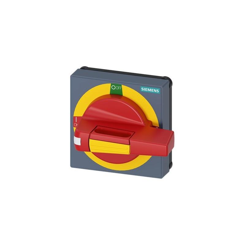 Handle with masking frame Emergency switching-off Size 75x 75, for shaft 8x 8, I-0-II, Handle size 55 mm Accessory for 3KC0 size 1 and 2