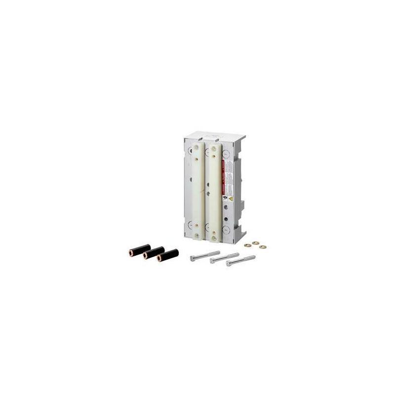 busbar adapter 60 mm SYS. UL 508 Busbar system 60 mm Bar thickness: TT profile UL rating 240-600V/250A Can be used in spring circuits IEC rating 690 V/250 A for 3VL circuit breaker with pipe contacting for cable outlet top/bottom Adapter length 190 mm Adapter width 105 mm for VL150 UL DG-FRAME for VL250 UL FG-FRAME
