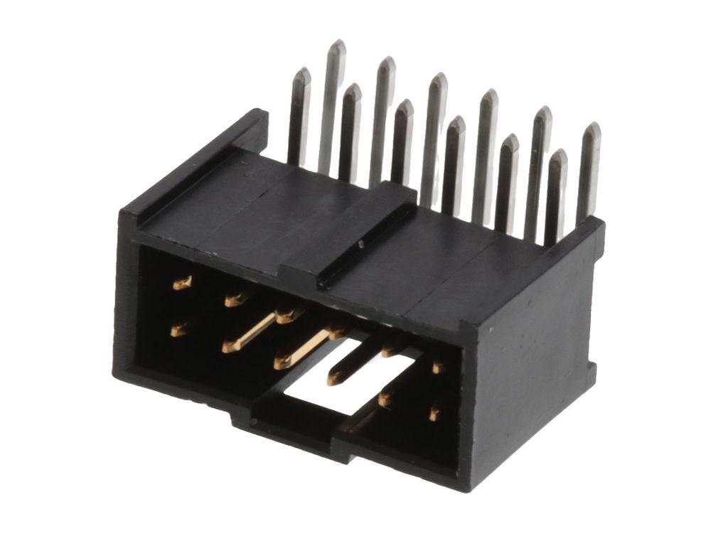 C-Grid III Header, Dual Row, Right-Angle, Shrouded, Fully Loaded, 12 Circuits, Black 0.76µm Gold (Au) Selective Plating