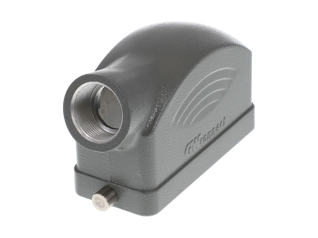 GWconnect STD - Standard, Single Lever Hood, Die-cast Aluminum, with 2 Pegs, Side Entry, Size 16B «77x27», Extended M25 Thread, Grey