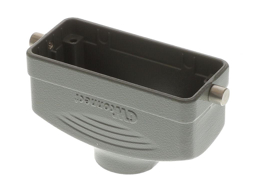 GWconnect STD - Standard, Single Lever Hood, Die-cast Aluminum, with 2 Pegs, Top Entry, Size 16B «77x27», Extended M25 Thread, Grey