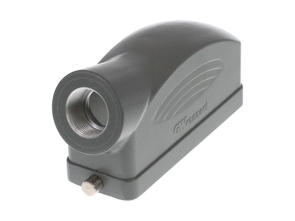 GWconnect STD - Standard, Single Lever Hood, Die-cast Aluminum, with 2 Pegs, Side Entry, Size 24B «104x27», Extended M25 Thread, Grey