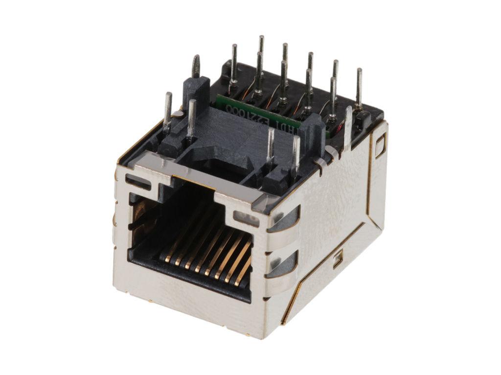 MXMag Gigabit Ethernet 8 Core Non-PoE Single-Port RJ45 Connector, 21.40mm Depth, 3.30mm Phy Pin Length, Right-Angle, Standard Profile, with Shield Tabs, Non-LED, Industrial Temperature, with 2kV Shield Connection, Tray