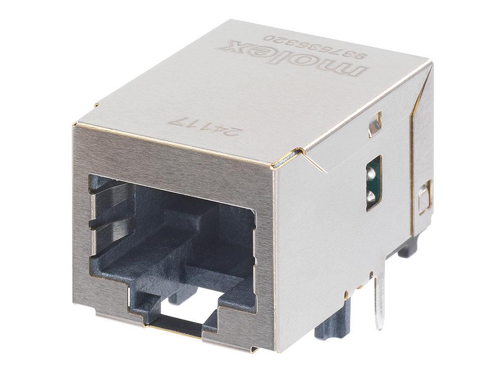 MXMag Fast Ethernet 4 Core Non-PoE Single-Port RJ45 Connector, 21.40mm Depth, 3.30mm Phy Pin Length, Right-Angle, Standard Profile, without Shield Tabs, Non-LED, Industrial Temperature, with Pick-and-Place Option, Tape and Reel