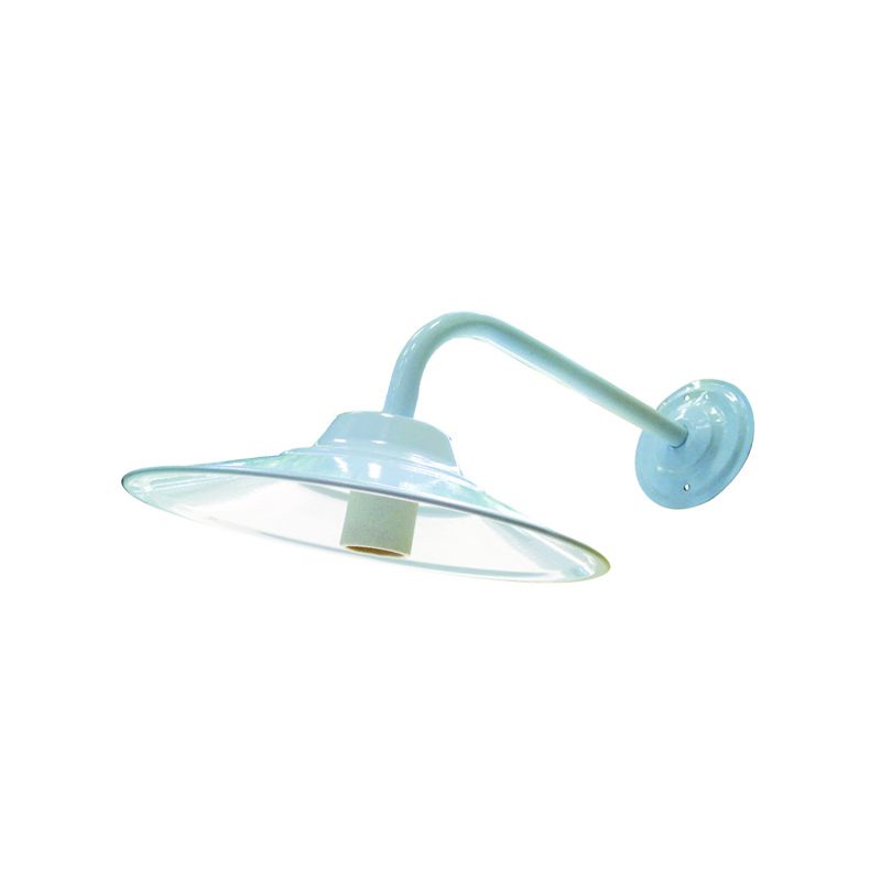 CORPO REFLETOR EM ALUMINIO REPUXADO,26CM,E-27.BRACO EM TUBO DE ACO DIAMETRO 5/8 C/COMPRIMENTO 300MM FIXADO.