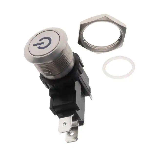 Push Button Switches, Single Pole - Double Throw Configuration (Pole-Throw), Anti-Vandal, Single Actuator, Flush Actuator Profile, Alcoswitch AVH19; Alias: AVH19 FLT SS MT PWR BLU 24V26A