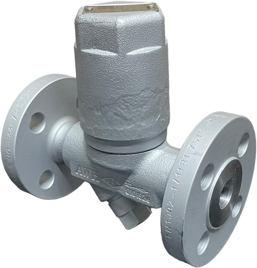 Bimetallic steam trap with inside strainer and flanges