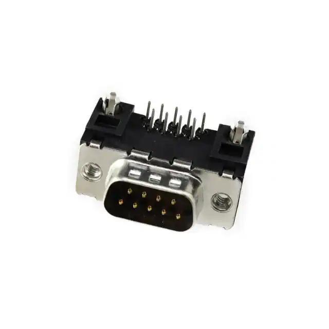 D-Sub Standard Board Mount Connector, Input Output Connectors, Signal 9 way Pin Right Angle, Solder Europe standard, 500 cycles, Harpoons + Threaded Insert UNC 4 - 40 + Elec cont., 1.6mm PCB thickness.
