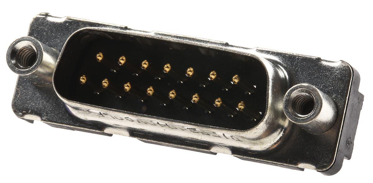D-Sub Standard Board Mount Connector, Input Output Connectors, Signal 15 way Pin Straight Solder, 200 cycles, Harpoons + Female Screw UNC 4 - 40 + Elec cont., 1.6mm PCB thickness.