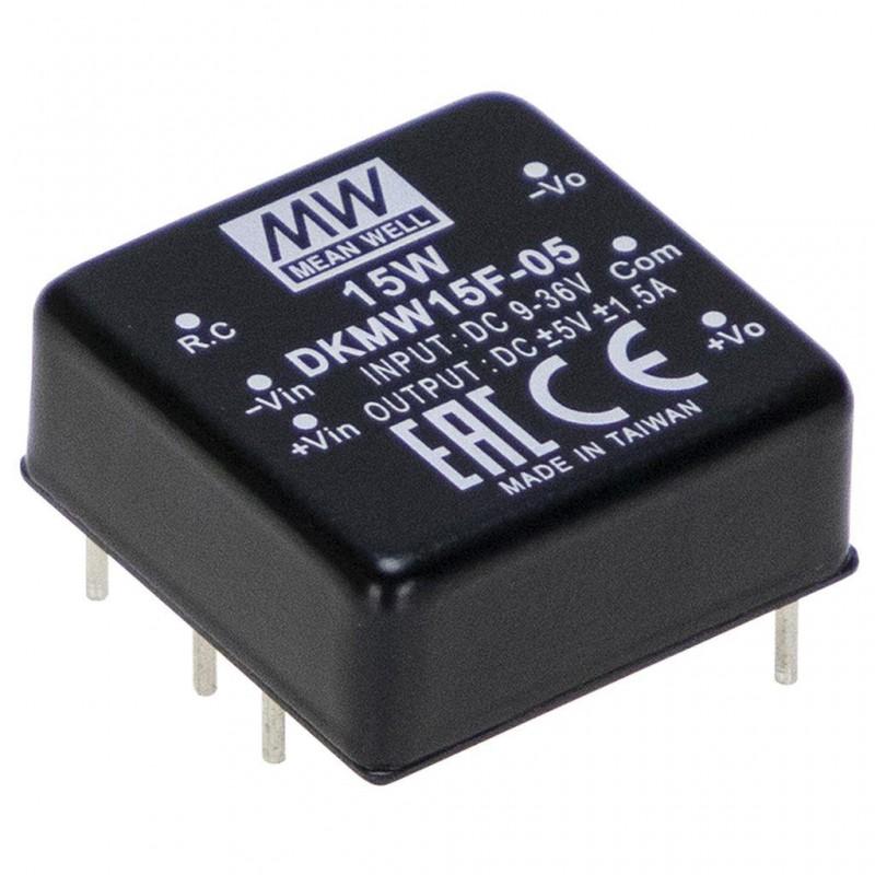 DC-DC Converter PCB mount; Ultrawide input 18-75Vdc; Single Output +-12Vdc at +-0.625A; DIP Through hole package; 1" x 1" compact size