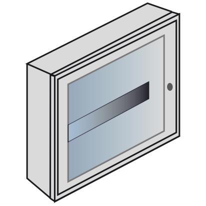 Sheet metal wall board with crystal door 12 DIN modules 1 row