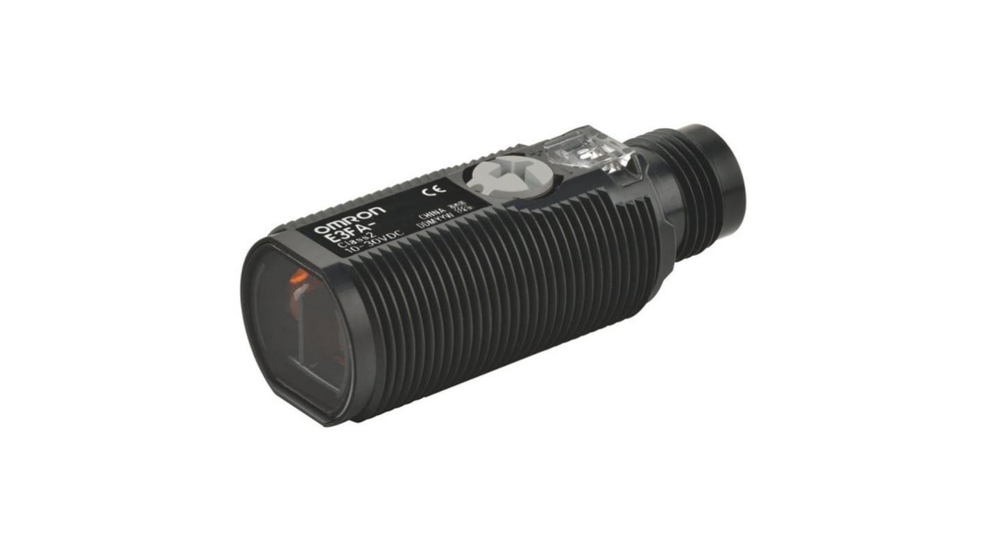 Omron E3FA series photoelectric sensor with PNP type output. equipped with a retro-reflective type sensing method that can detect up to 4000 mm.
