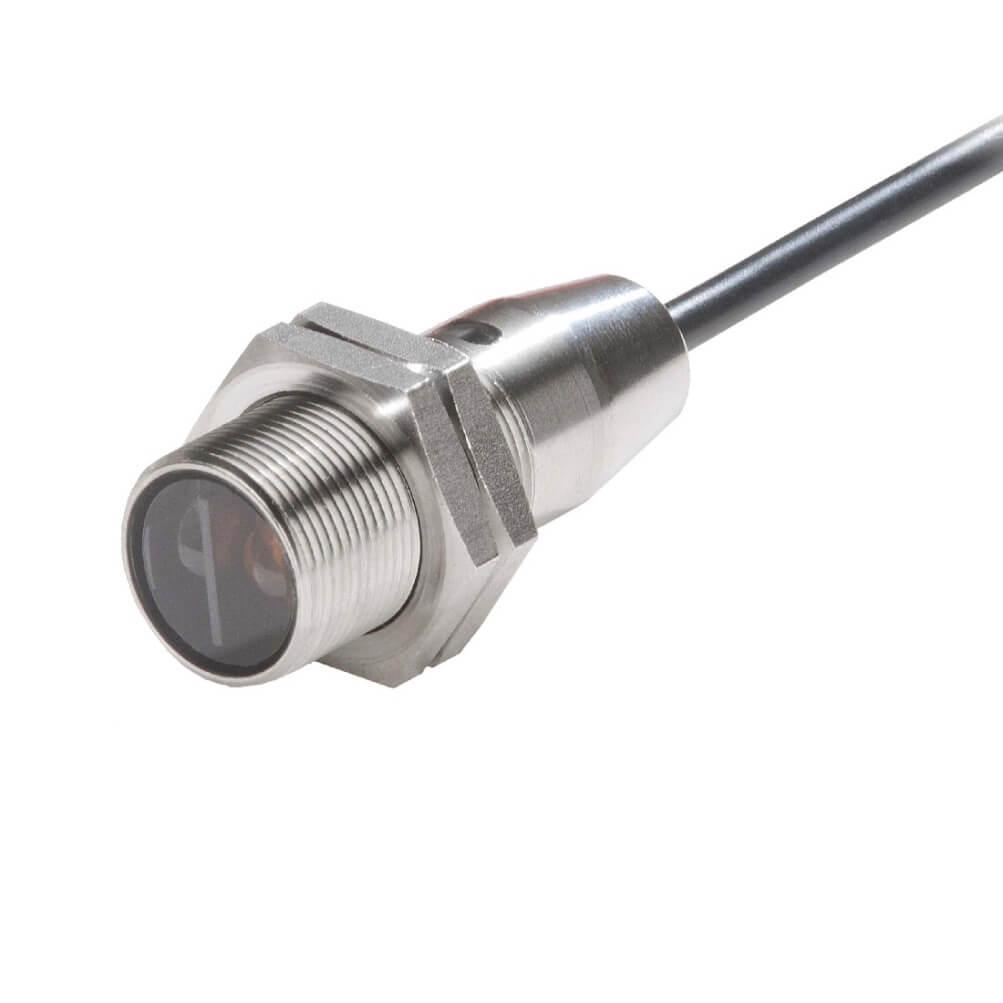 Photoelectric sensor, M18 axial, SUS body, red LED, retro-reflective, 0.1-4m, PNP, L-ON/D-ON selectable, 2m cable