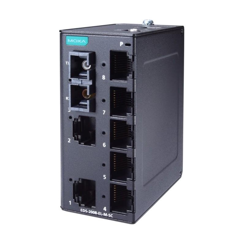 Unmanaged Fast Ethernet switch with 7 10/100BaseT(X) ports, 1 100BaseFX multi-mode port with SC connectors, 12/24/48 power input, metal housing, -40 to 75C operating temperature