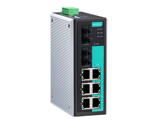 INDUSTRIAL UNMANAGED ETHERNET SWITCH WITH 6 10/100 BASET(X) PORTS, 2 MULTI MODE 100 BASEFX PORTS, ST CONNECTOR, -10 TO 60°C