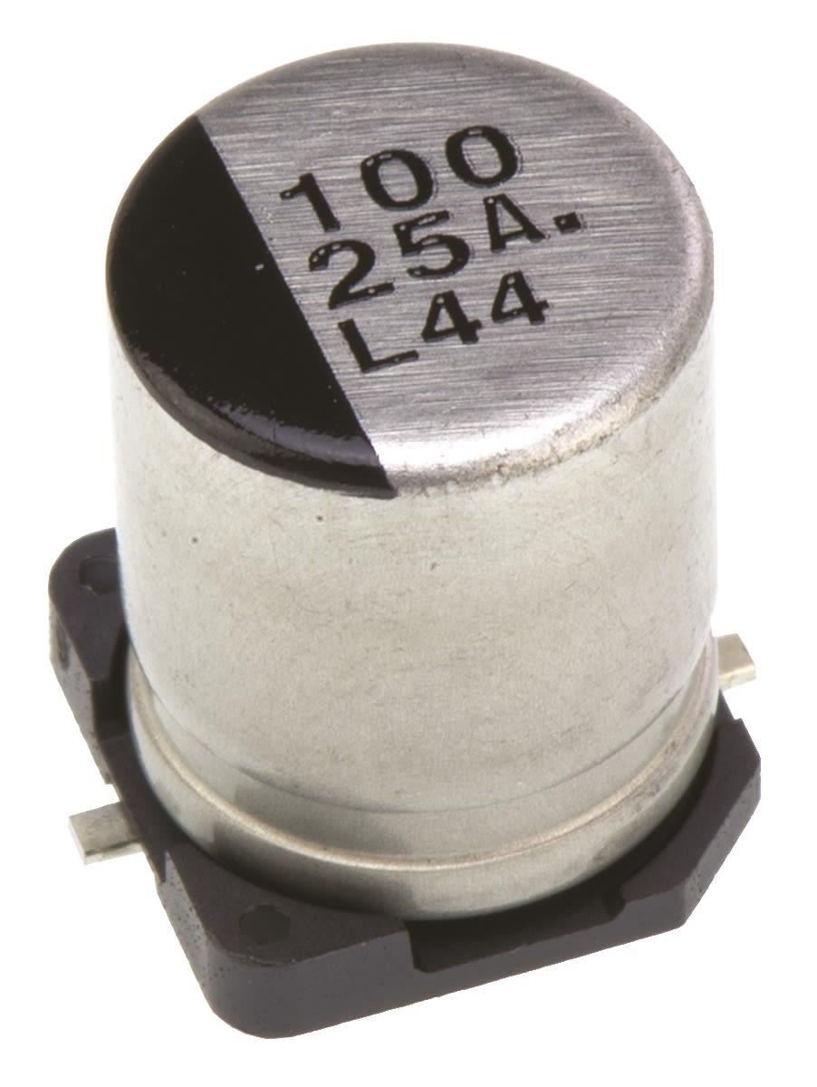 Panasonic capacitor, VS series, 100 F, 25V dc, 20%, 85 C, SMD