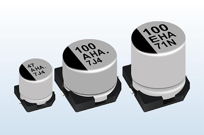 Panasonic capacitor, HA series SMD, 47 F, 50V dc, 20%, 105 C, SMD