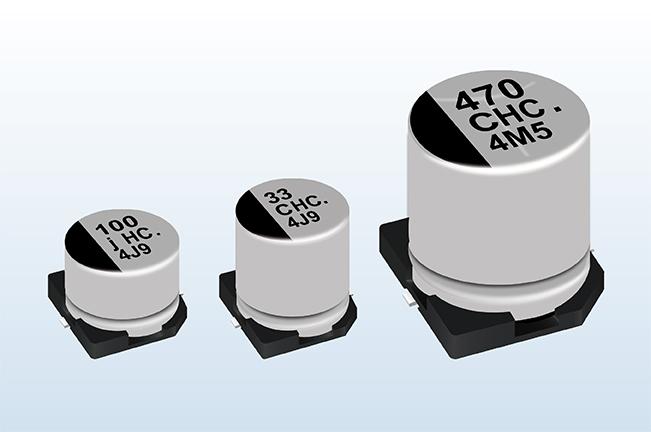 Panasonic capacitor, HC series SMD, 100 F, 16V dc, 20%, 105 C, SMD