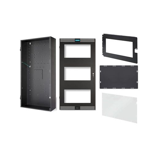consiste em: uma caixa traseira 3HU FHB2005-U1 (preta), duas portas internas FHD2004-U1, uma porta externa FHD2007-U3 (preta), uma placa de porta externa vazia FHD2009-U1 (preta), duas janelas claras FHD2006-U1