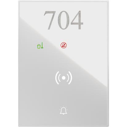 Out-of-door indicator badge reader with WHITE color plaque finish made of plastic material.