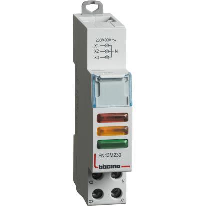 Triple lamp holder for signaling with greenish-yellow LED at 230400Vac 1 module