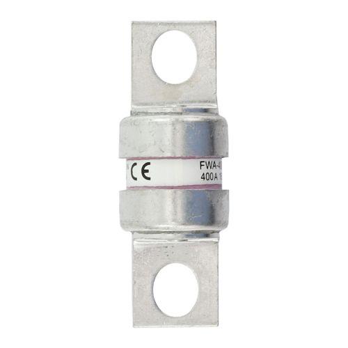 Eaton Bussmann series FWA high speed fuse, 500 Vac/dc (35-800A only), 400A, 200 kAIC Vac (70-1000A), 20 kAIC at 150 Vdc (70-800A), 100 kAIC at 80 Vdc (70-1000A), None, High speed fuse, Blade end X blade end, Stud