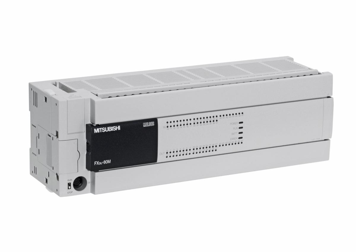 PLC, FX3U Base Unit AC 100-240 V; 40 inputs DC 24 V; 40 transistor outputs; sink