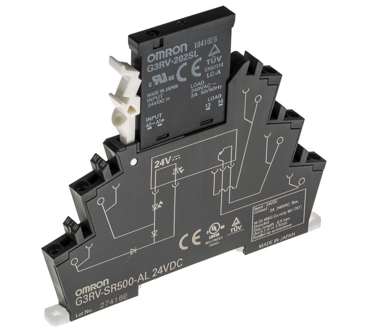 Omron solid-state interface relay, DIN rail, 24 VDC, 2 A, 264 VAC.