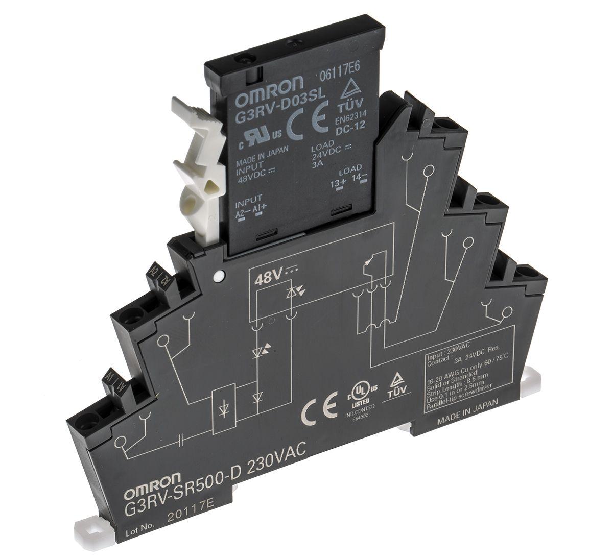 Omron solid-state interface relay, DIN rail, 230 V ac, 3 A, 26.4 V dc.