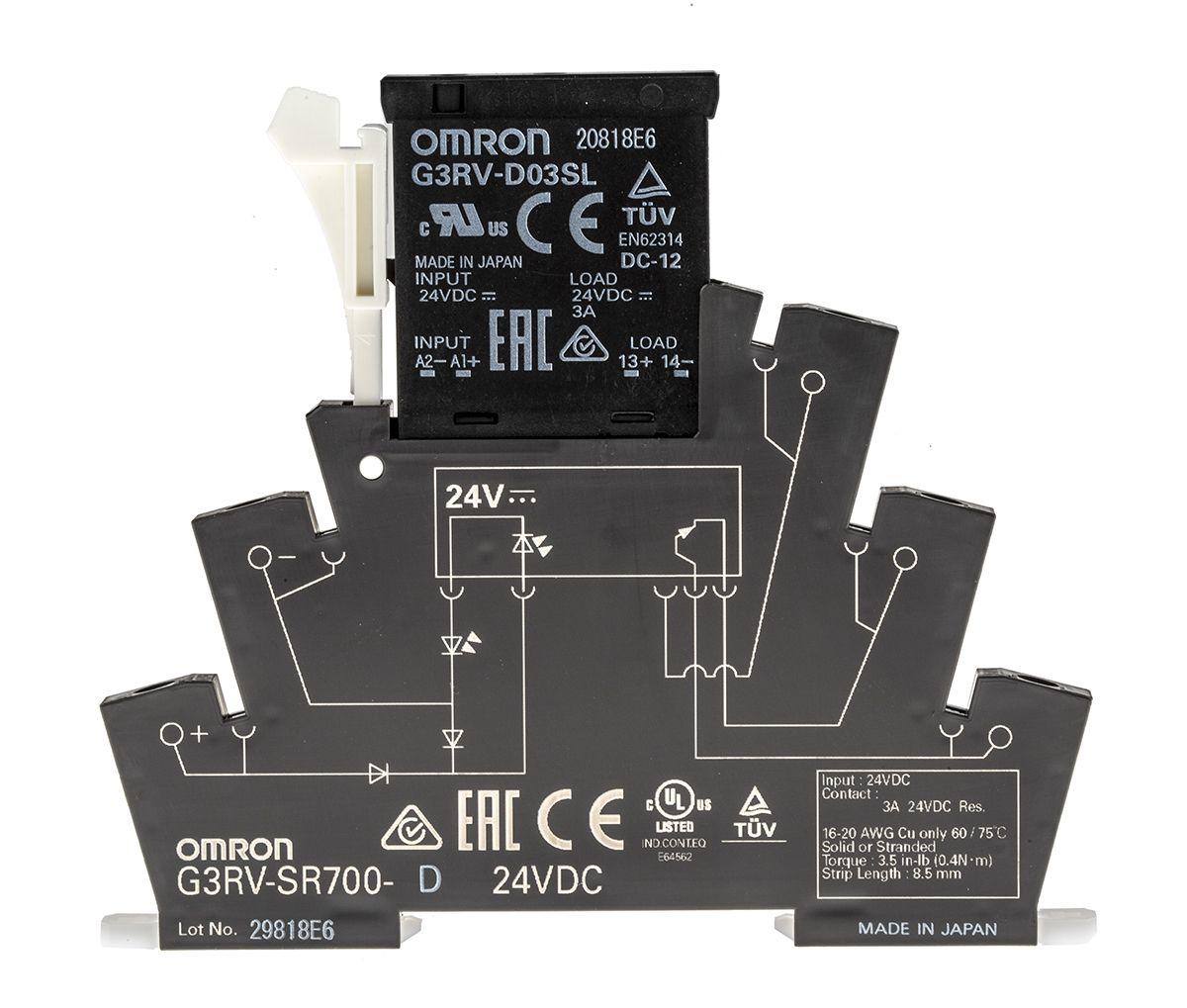 Omron solid-state interface relay, DIN rail, 24 VDC, 3 A, 26.4 VDC.