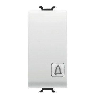 UNIPOLAR BUTTON 250V ac - NA 16A ILLUMINABLE - WITH REPLACEABLE NEUTRAL LENS - BELL SYMBOL - 1 MODULE - GLOSSY WHITE - CHORUSMART