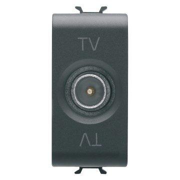CLASS A SCREENED COAXIAL TV SOCKET - 9.5mm MALE IEC CONNECTOR - DIRECT WITH CURRENT PASSAGE - 1 MODULE - SATIN BLACK - CHORUSMART